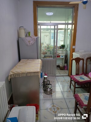 双气,定制衣柜电炕,带家电,适合老人居住,有大锅炕,超大阳台,房本49.9平,阳台不算面积,实际60平左右。空调冰箱油烟机宽带都有,新热水器,家里很干净拎包可入住。好人家的房,房主已换房,期待有缘人。