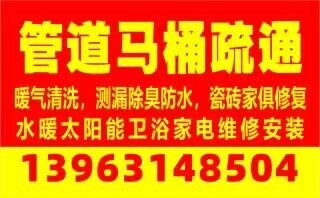 查漏防水,卫生间除臭防虫,暖气太阳能清洗,家俱瓷砖修复,马桶除垢,打捞贵重物品,水暖太阳能卫浴家电维修,暖气清洗包括地暖,暖气片,洗衣机,空调,热水器,太阳能等,管道马桶疏通包括:马桶,地漏,洗菜盆,洗脸盆,锅炉烟道阻塞疏通,大钻头管道疏通与高压疏通机清洗疏通饭店家庭重油污管道,污水井化粪池吸粪,批发维修安装太阳能,家庭网上购物安装与维修包括:分水器,太阳能,小背篓,马桶,花洒,换热器等,各种箱包拉杆箱维修,24小时全天服务联系电话13963148504,联系人邵师傅
