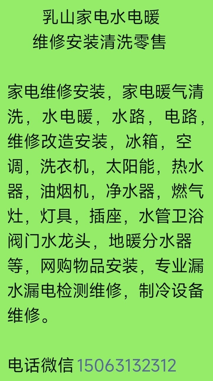 家电维修安装零售,家电清洗,水路,电路,维修改造安装,冰箱,空调,洗衣机,太阳能,热水器,油烟机,净水器,燃气灶,灯具,插座,水管卫浴阀门水龙头,地暖分水器等,网购物品安装,专业漏水漏电检测维修,制冷设备维修。
